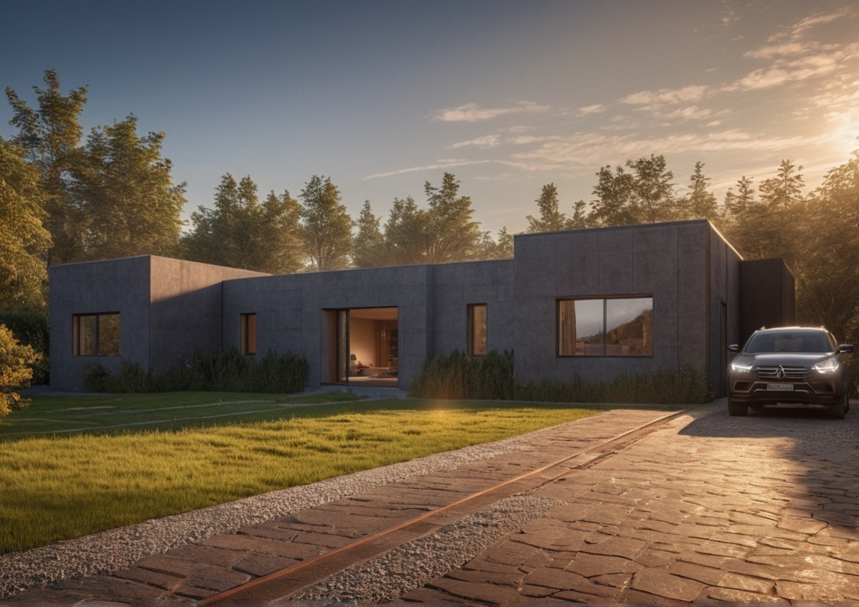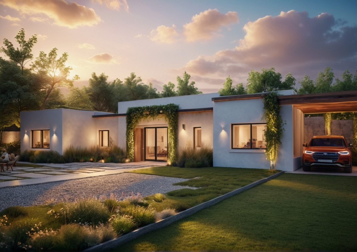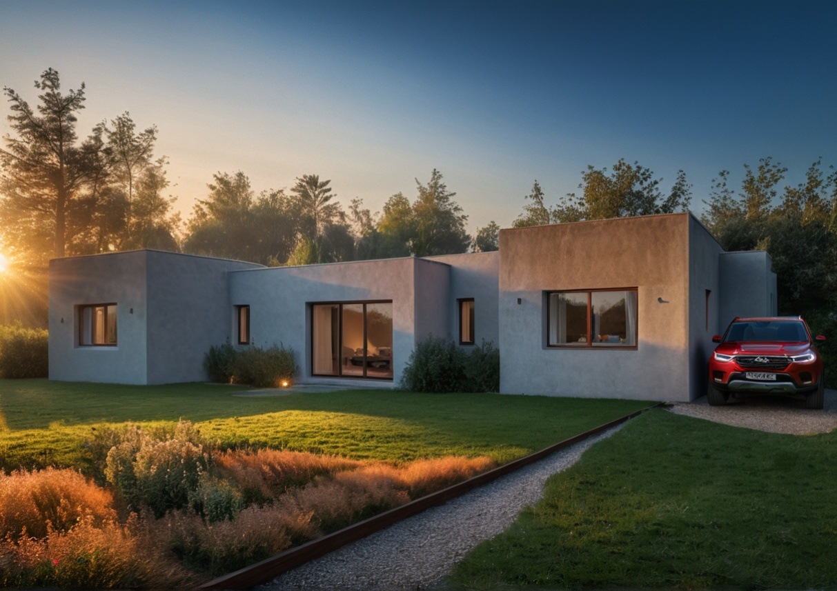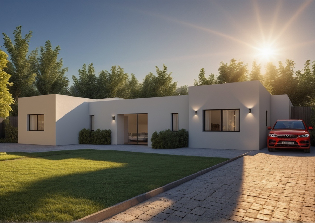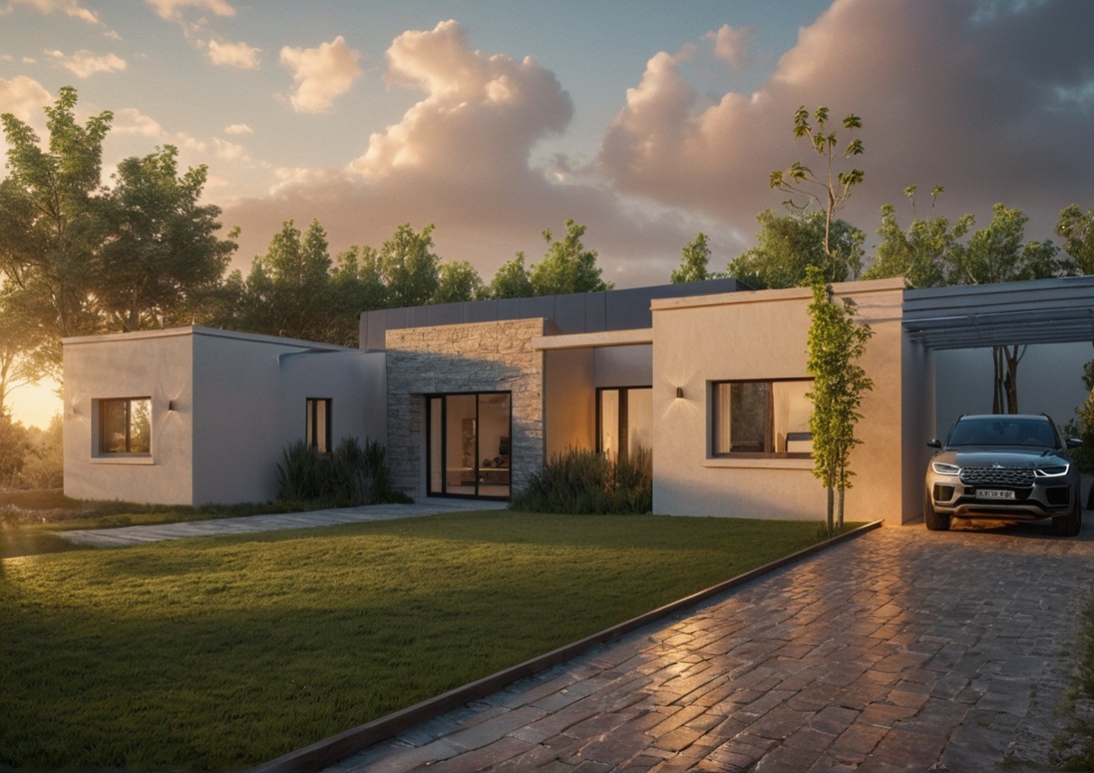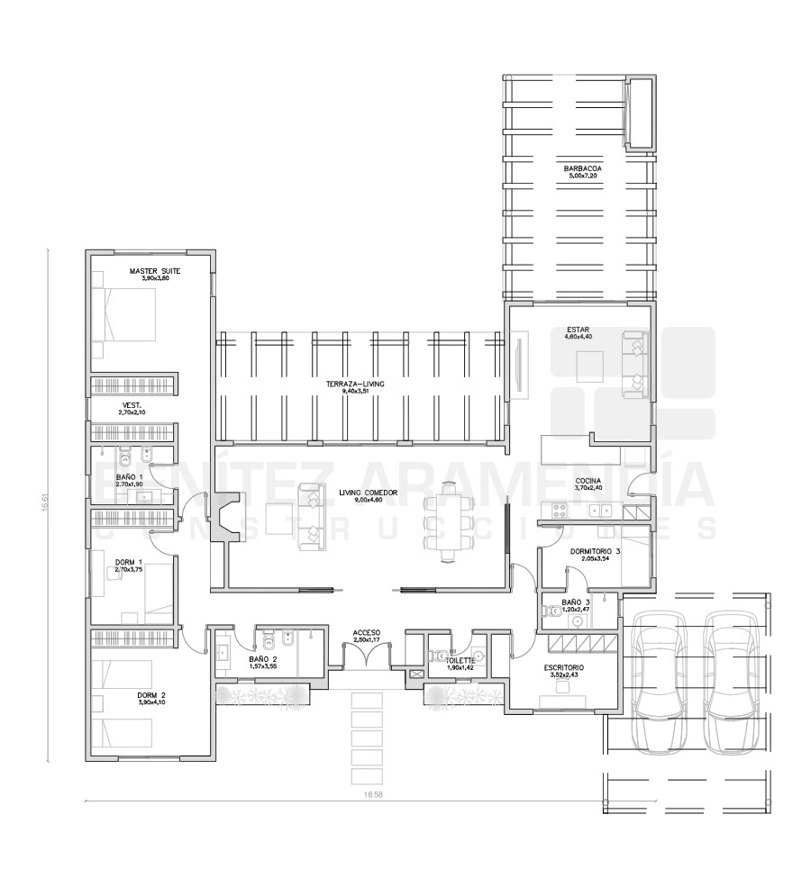 La casa se desarrolla toda en una planta, cuenta con doble circulación y un importante living comedor con gran altura de techos y ventanales al jardín. En la composición de su fachada se aprecia una marcada simetría con el acceso principal al centro y un rico juego de volúmenes. Al ingresar nos recibe un hall central definido que se vincula con un toilette de visitas, un escritorio y el gran living comedor. La cocina se ubica junto a el estar diario y la misma puede ser definida o integrada con una barra o isla. Adyacente a la cocina se encuentra un dormitorio con baño en suite. La zona privada se compone de tres cómodos dormitorios y dos baños. El dormitorio principal cuenta con baño en suite y vestidor. En los espacios exteriores están previstos un parrillero con pérgola cubierta, una terraza con pérgola cubierta vinculada al living comedor, un área de servicios con tendedero, depósito y una cochera con pérgola cubierta para dos autos.